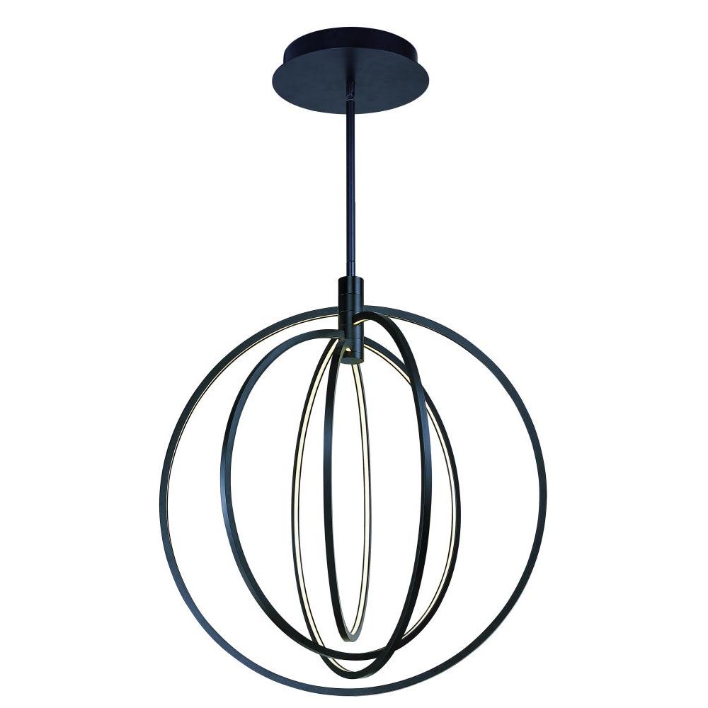 Four concentric rings strategically placed in orbit to form a spherical lighting design as unique as it is functional. With the internal placement of LED strips within either a Bronze or Brushed Pewter frame, the light moves both direct and indirect depending on its orientation.