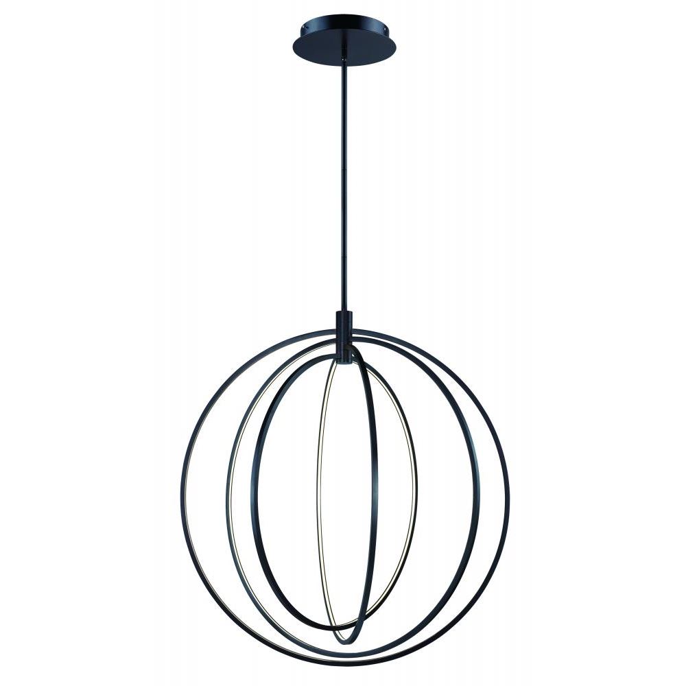 Four concentric rings strategically placed in orbit to form a spherical lighting design as unique as it is functional. With the internal placement of LED strips within either a Bronze or Brushed Pewter frame, the light moves both direct and indirect depending on its orientation.