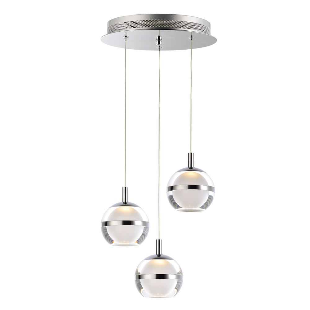 Orbs of crystal Clear acrylic are trimmed with a Polished Chrome band and frosted inside for excellent light diffusion. The bottom is dimpled for a unique optical effect.