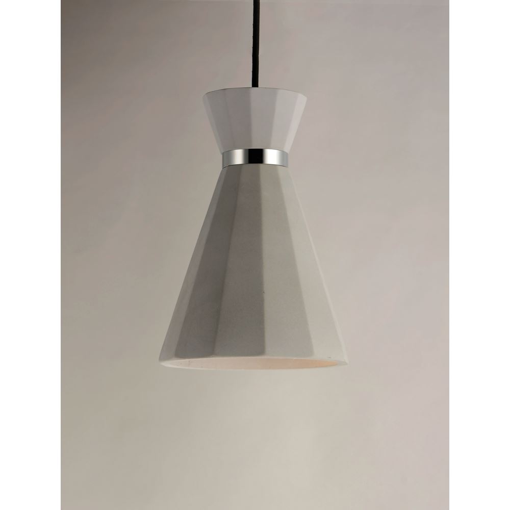 Heavy weight cone shaped pendants of White gypsum or Grey concrete, both with Polished Chrome accents, project ample light downward by means of the LED GU10 lamps provided.