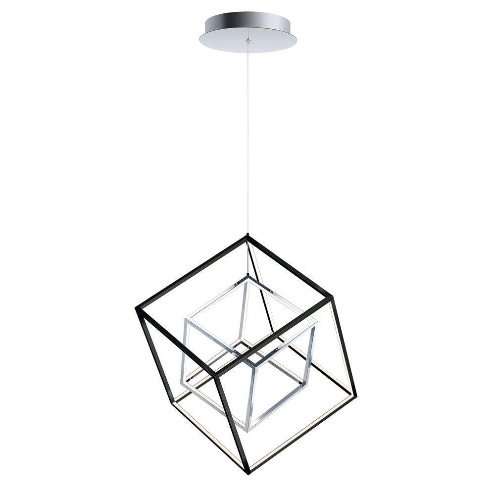 Cubes of Black and Polished Chrome are lit from the inside by LED strips concealed in a channel. The silhouette created by this inward design creates a dramatic light effect.