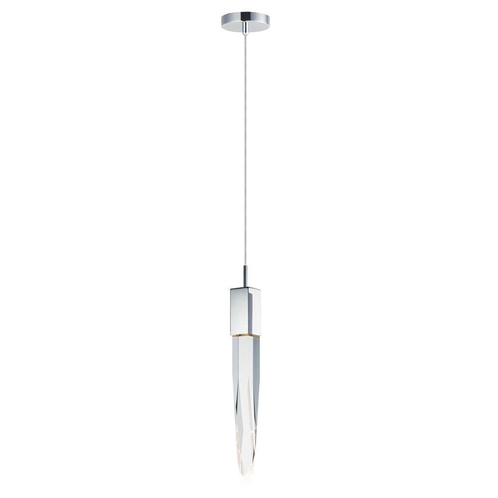 Stalactites of Clear Beveled crystal suspend from your choice of Polished Chrome or Black supports, can be hung at various heights to create a spectacular array. The crystal shimmers as light diffuses through the facets powered by 90 CRI LED dimmable modules.