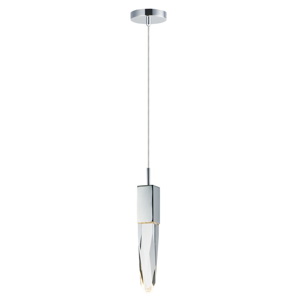 Stalactites of Clear Beveled crystal suspend from your choice of Polished Chrome or Black supports, can be hung at various heights to create a spectacular array. The crystal shimmers as light diffuses through the facets powered by 90 CRI LED dimmable modules.