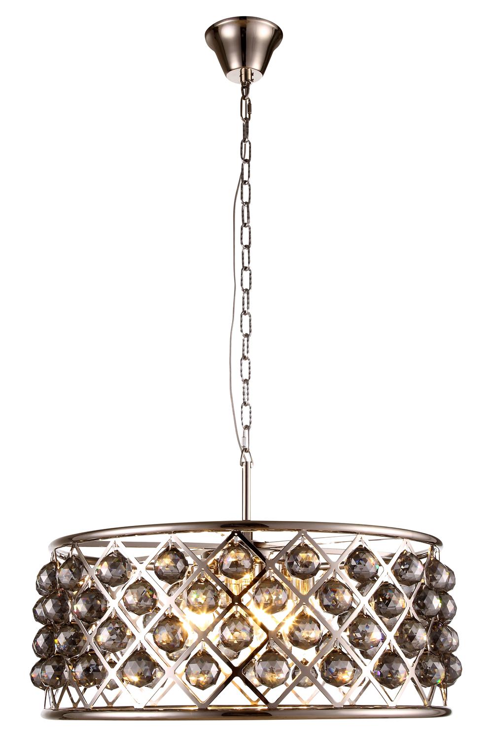 This Madison 6-LT Polished Nickel Chandelier Silver Shade Royal Cut Crystal from Elegant has a finish of Polished Nickel and fits in well with any Transitional style decor.