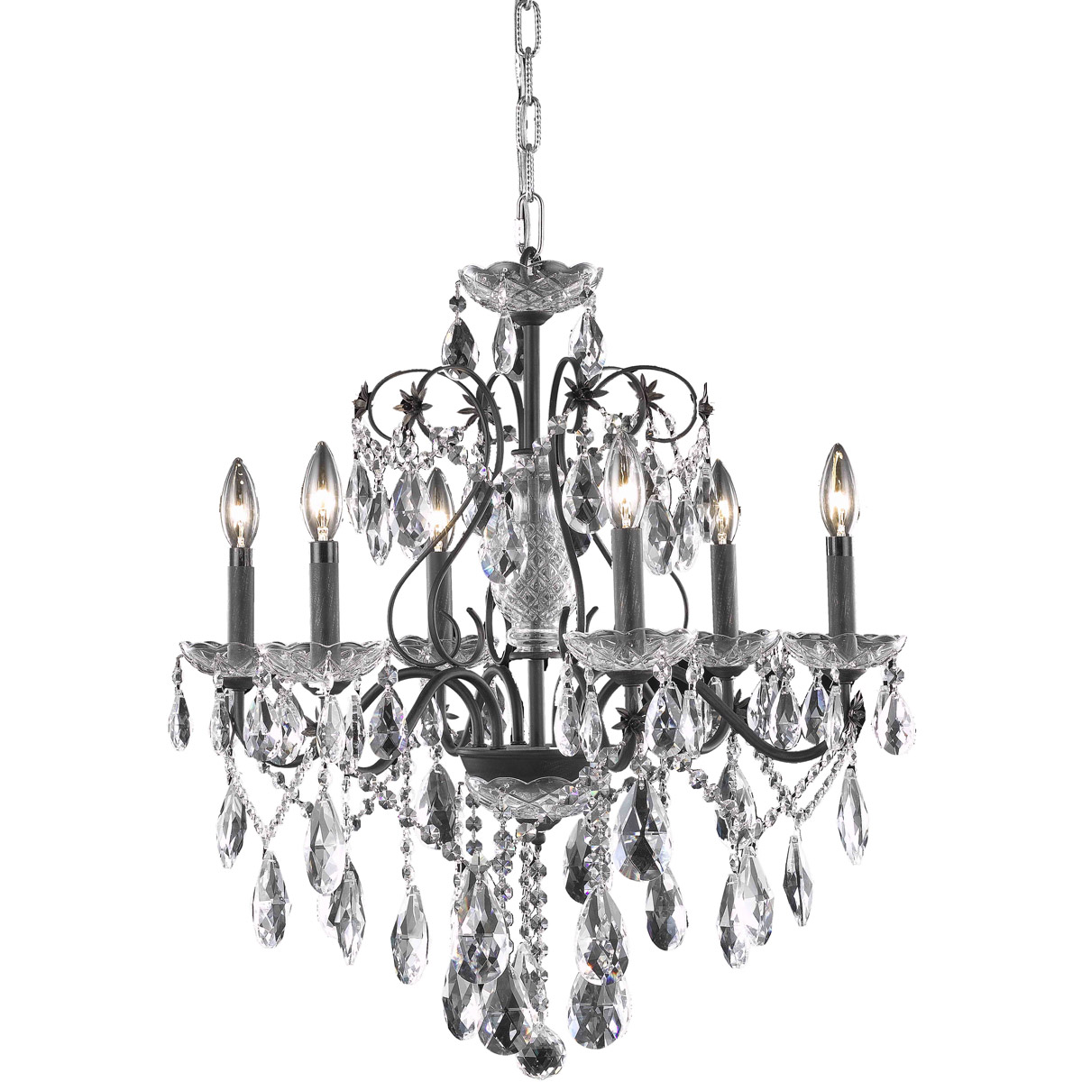 This St. Francis 6-LT Dark Bronze Chandelier Clear Royal Cut Crystal from Elegant has a finish of Dark Bronze and fits in well with any Transitional style decor.