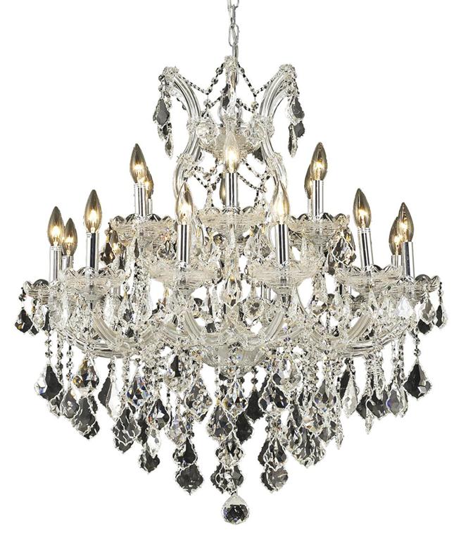 This Maria Theresa 19-LT Chrome Chandelier Clear Royal Cut Crystal from Elegant has a finish of Chrome and fits in well with any Transitional style decor.