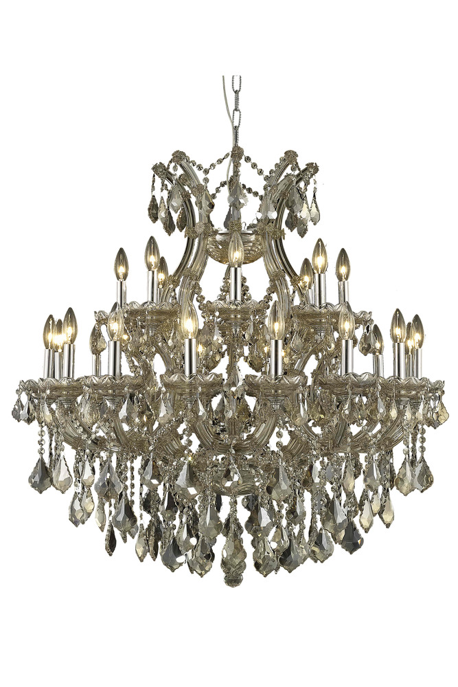 This Maria Theresa 24-LT Golden Teak Chandelier Golden Teak Royal Cut Crystal from Elegant has a finish of Golden Teak and fits in well with any Transitional style decor.