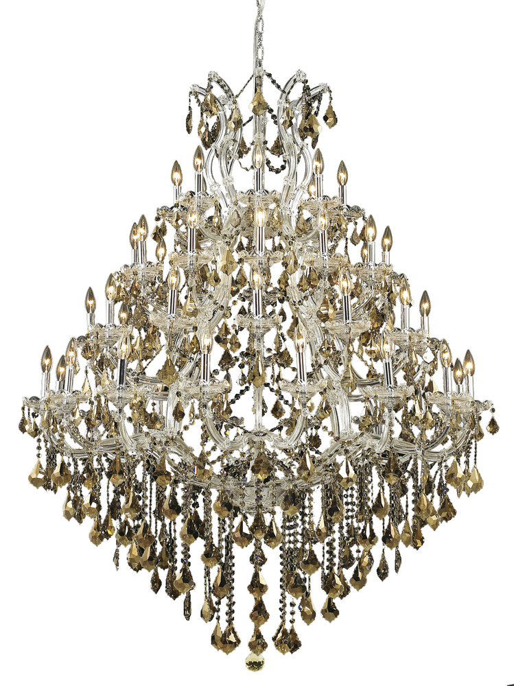 This Maria Theresa 49-LT Chrome Chandelier Golden Teak Royal Cut Crystal from Elegant has a finish of Chrome and fits in well with any Transitional style decor.