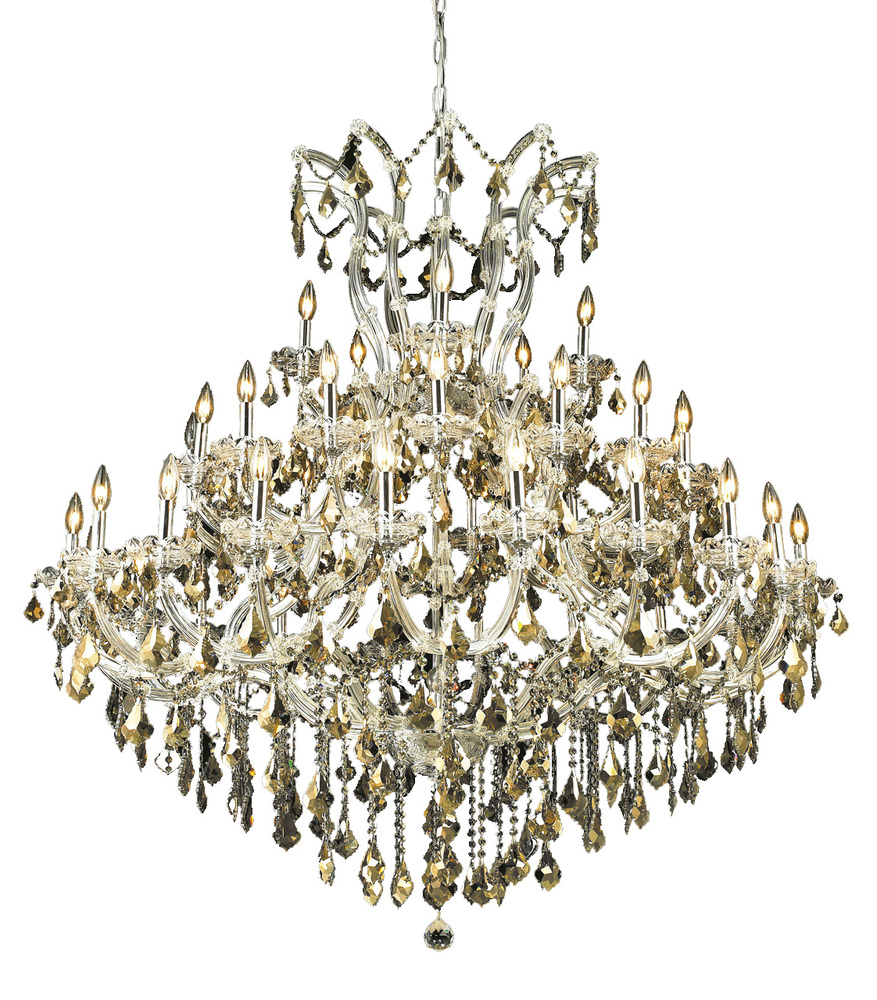 This Maria Theresa 41-LT Chrome Chandelier Golden Teak Royal Cut Crystal from Elegant has a finish of Chrome and fits in well with any Transitional style decor.