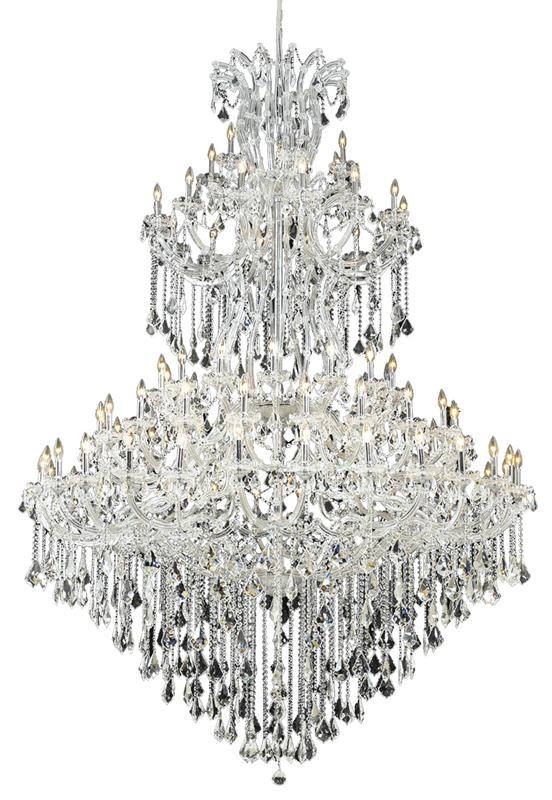 This Maria Theresa 85-LT Chrome Chandelier Clear Royal Cut Crystal from Elegant has a finish of Chrome and fits in well with any Transitional style decor.