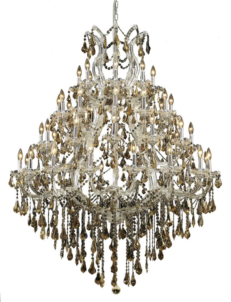 This Maria Theresa 49-LT Chrome Chandelier Golden Teak Royal Cut Crystal from Elegant has a finish of Chrome and fits in well with any Transitional style decor.