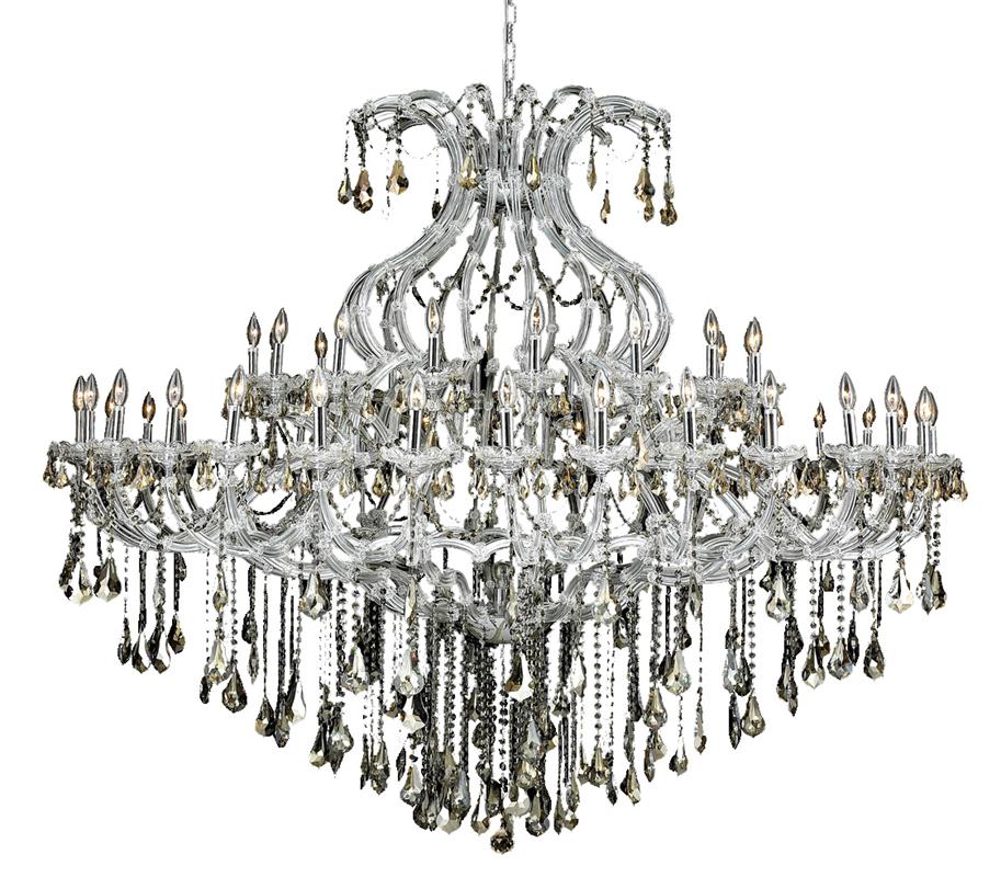 This Maria Theresa 49-LT Chrome Chandelier Golden Teak Royal Cut Crystal from Elegant has a finish of Chrome and fits in well with any Transitional style decor.