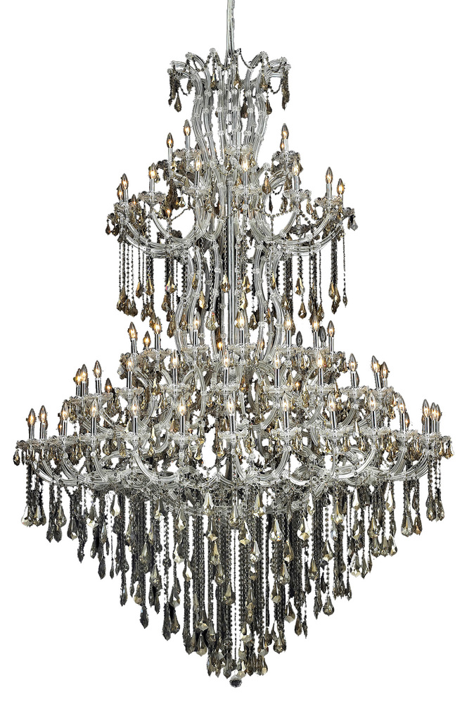 This Maria Theresa 85-LT Chrome Chandelier Golden Teak Royal Cut Crystal from Elegant has a finish of Chrome and fits in well with any Transitional style decor.
