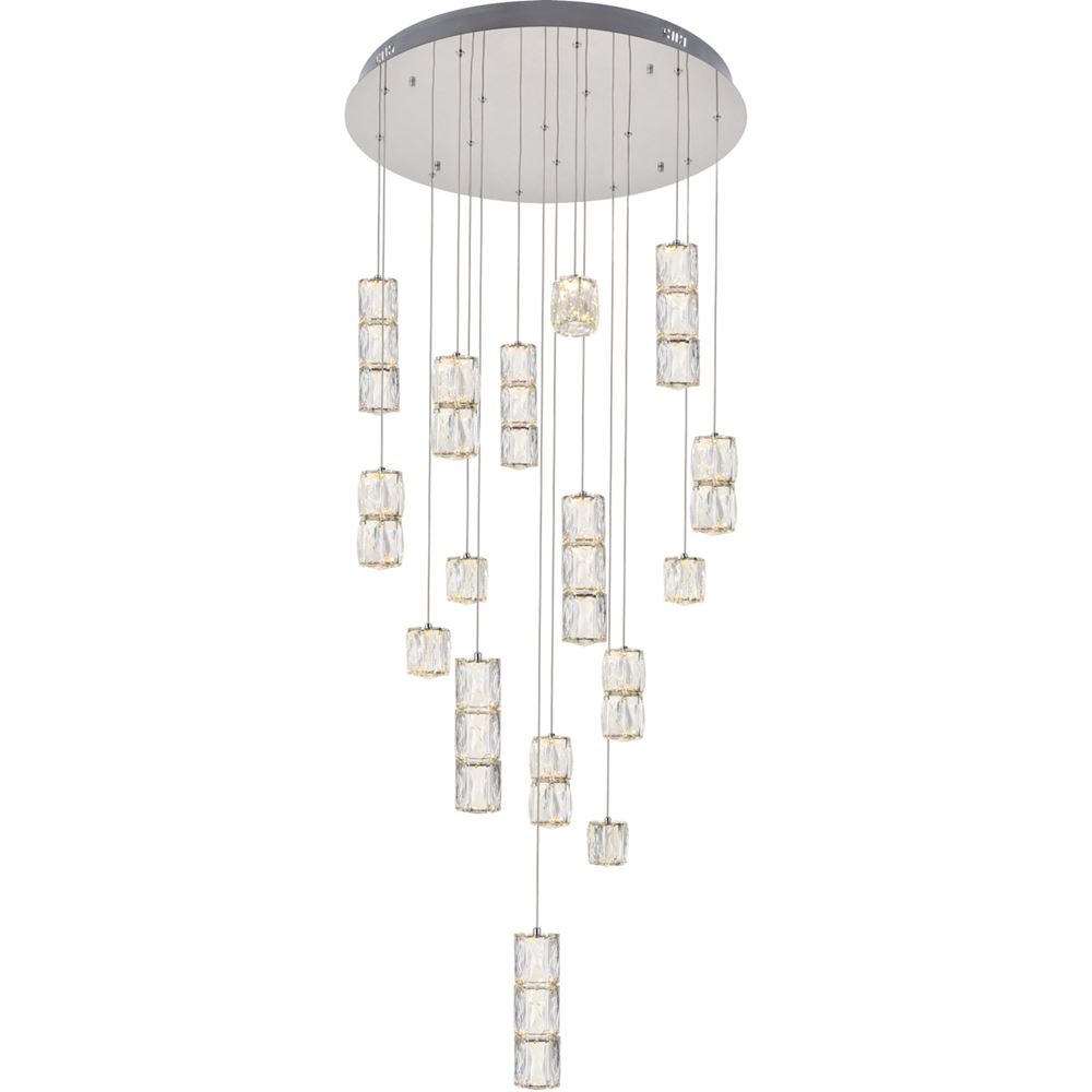 The Polaris collection is the epitome of “cool” in lighting, because each of the fixtures has rectangular, elegant-cut crystals that look like ice cubes, gracefully suspended from a stainless-steel base with a bright chrome finish. Designed for rooms with higher ceilings, these fixtures are definitely stylistic attention-getters.