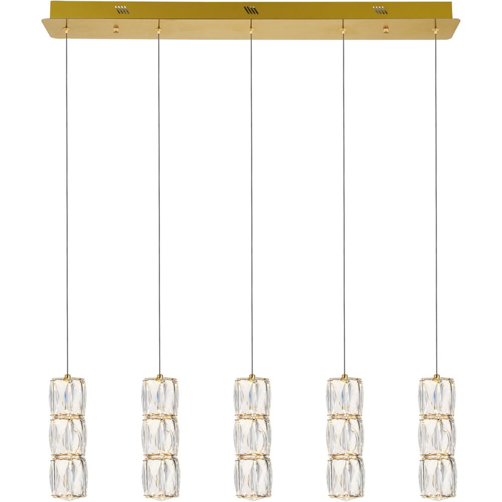 The Polaris collection is the epitome of “cool” in lighting, because each of the fixtures has rectangular, Royal-cut crystals that look like ice cubes, gracefully suspended from a stainless-steel base with a bright gold finish. Designed for rooms with higher ceilings, these fixtures are definitely stylistic attention-getters.