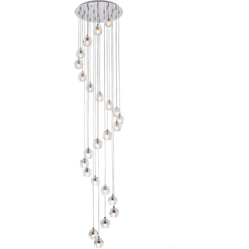Like enchanting bubbles of air surfacing from the fathoms of the deep sea, the Eren contemporary hanging pendant adds lighting with richness and grace. The layering of clear crystal globes offer softened, harmonious light to match a variety of home décor. Creating an environment of sophistication, this beautiful hanging pendant adds drops of magic to express your refined style.