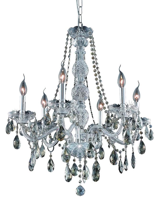 This Verona 6-LT Chrome Chandelier Golden Teak (Smoky) Royal Cut Crystal from Elegant has a finish of Chrome and fits in well with any Transitional style decor.