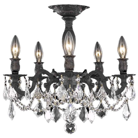 This Rosalia 5-LT Dark Bronze Flush Mount Clear Royal Cut Crystal from Elegant has a finish of Dark Bronze and fits in well with any Traditional style decor.