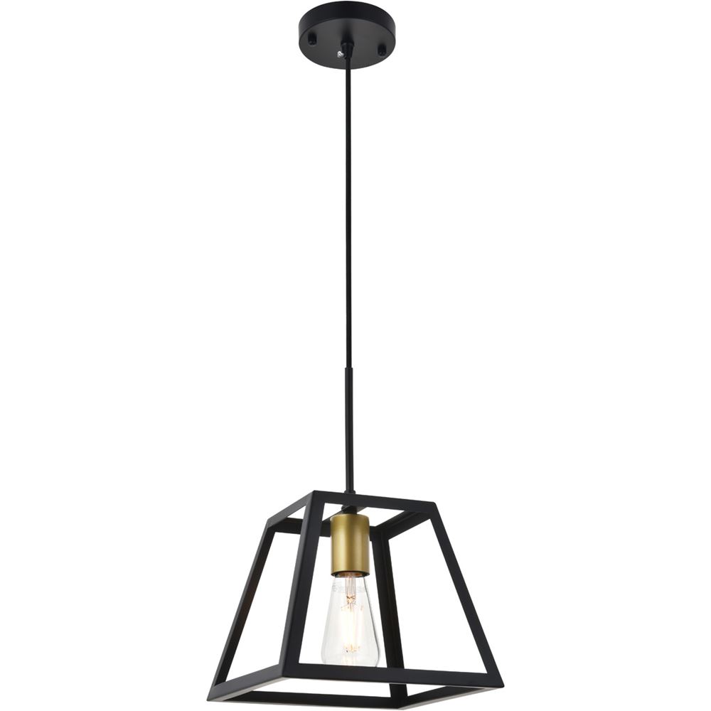 Modern two-toned brass and black finish pendant light with an open geometric frame