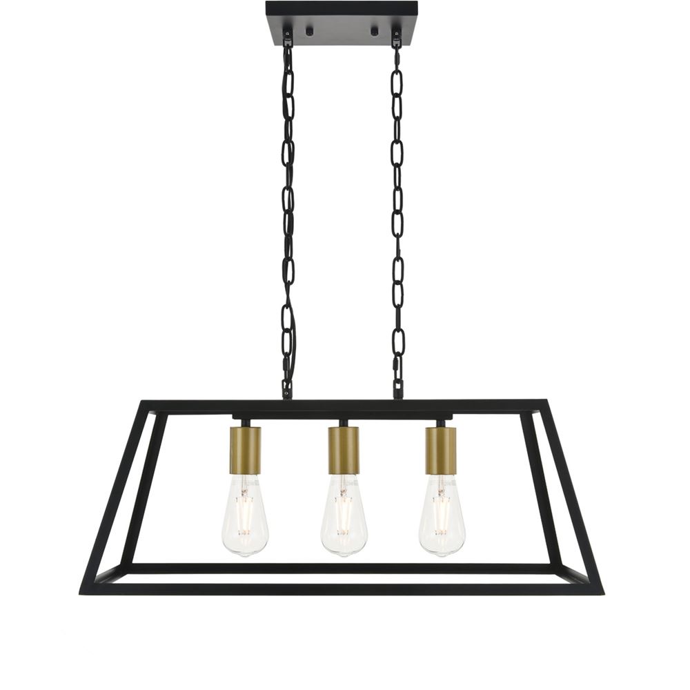 Modern two-toned brass and black finish 3-light pendant with an open geometric frame