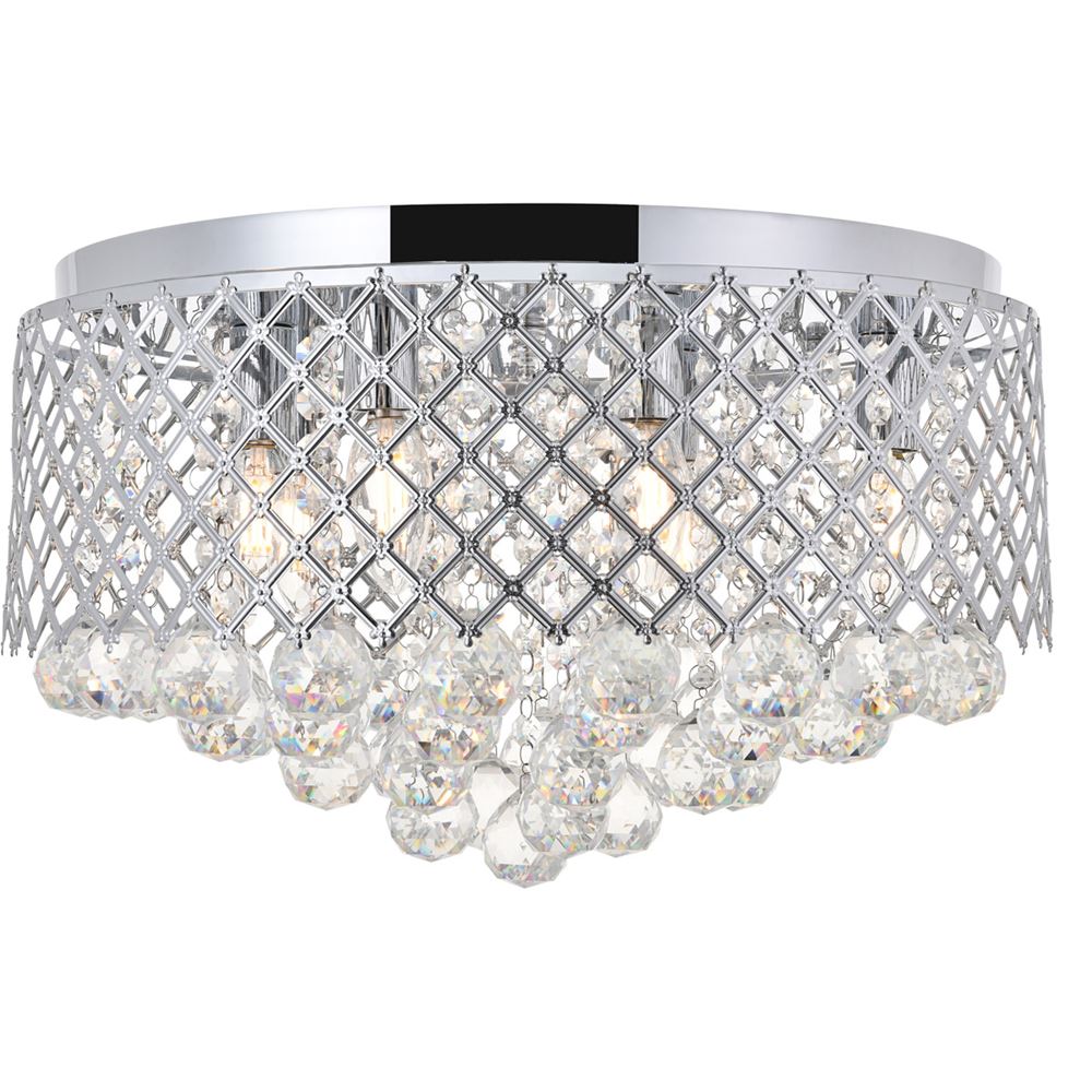 Enjoy the shimmering beauty of the Tully flush mount in a chrome finish. The elegant lattice metal curtain allows for the hanging crystals to play and dance around the illuminating light, with larger crystals at the base peeking out to say hello.