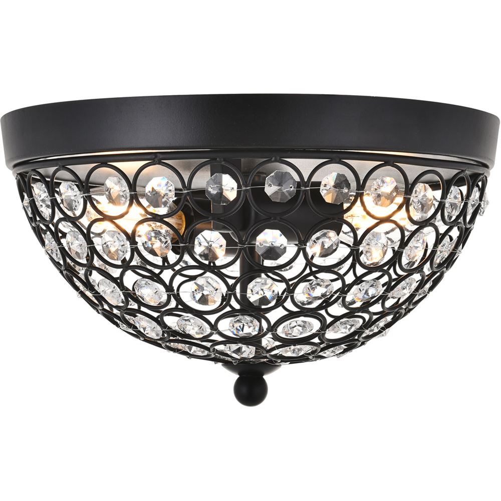 What could be better than a hemisphere of light and crystals? With the Taye collection flush mount in a Matte black finish, crystals are beautifully aligned within the circular pattern of the frame--light shimmering through the sparkling objects, adding even more interest and intrigue. Whether it shines in the living room or powder room, the glamour itself will create a luxurious atmosphere.
