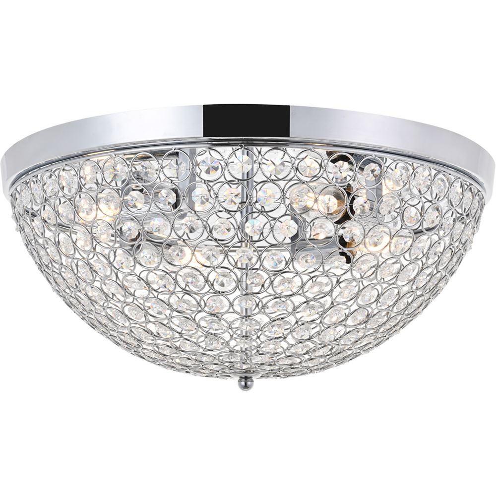 What could be better than a hemisphere of light and crystals? With the Taye collection flush mount in a chrome finish, crystals are beautifully aligned within the circular pattern of the frame--light shimmering through the sparkling objects, adding even more interest and intrigue. Whether it shines in the living room or powder room, the glamour itself will create a luxurious atmosphere.