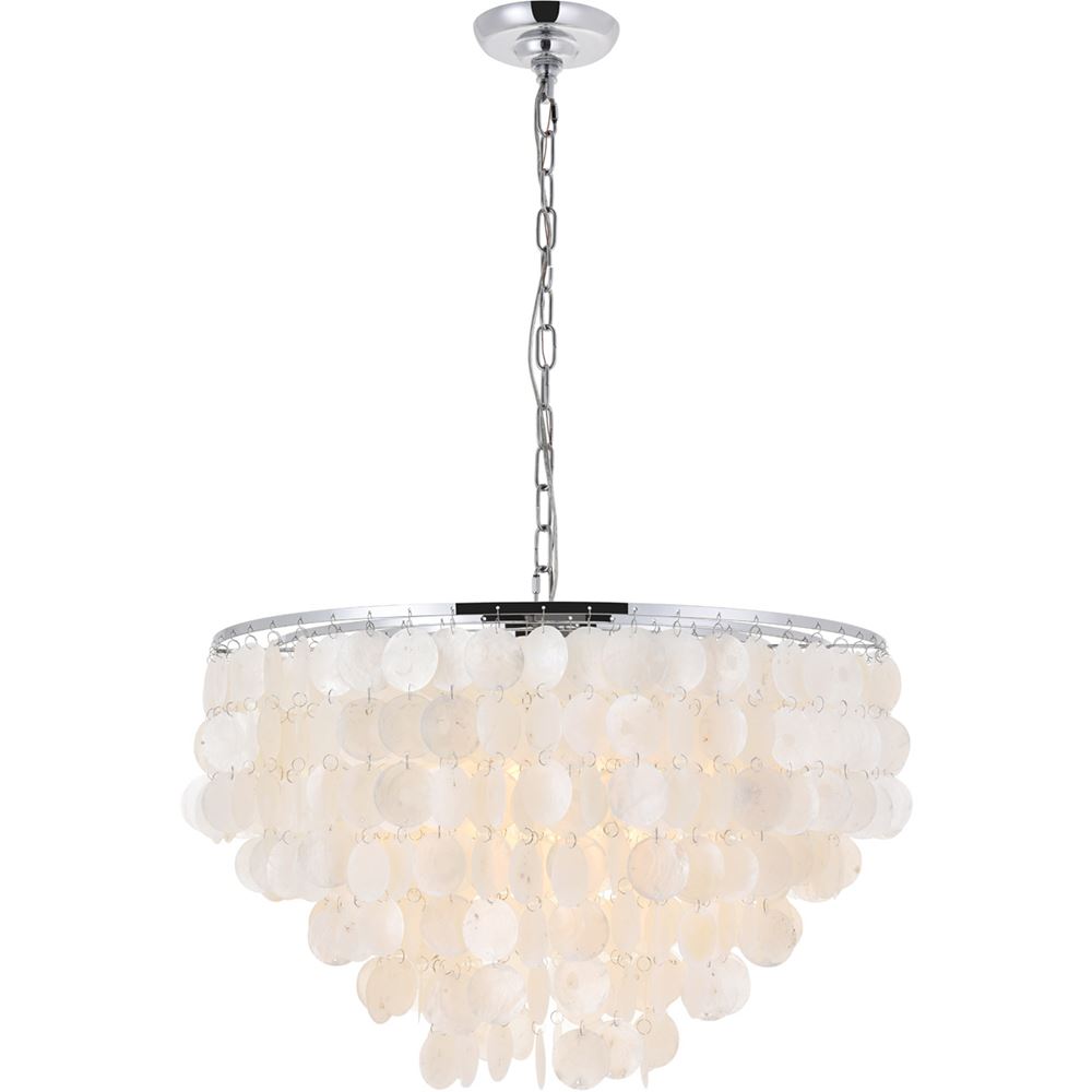 Chrome finish pendant with dreamy off-white shells adorning the tiers