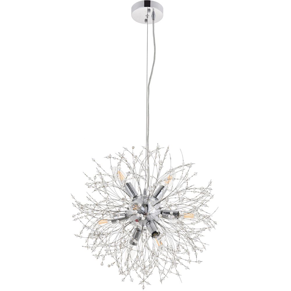 As if in a dream, this Flores collection pendant lamp in a chrome finish will guide you to where you need to go. Despite being reminiscent of a beautiful bouquet of flowers in the dreamlike springtime world, this light is perfect year-round. With 8 lights playing hide-and-seek within the strands of crystals, this pendant is the perfect cheerful addition to any home.