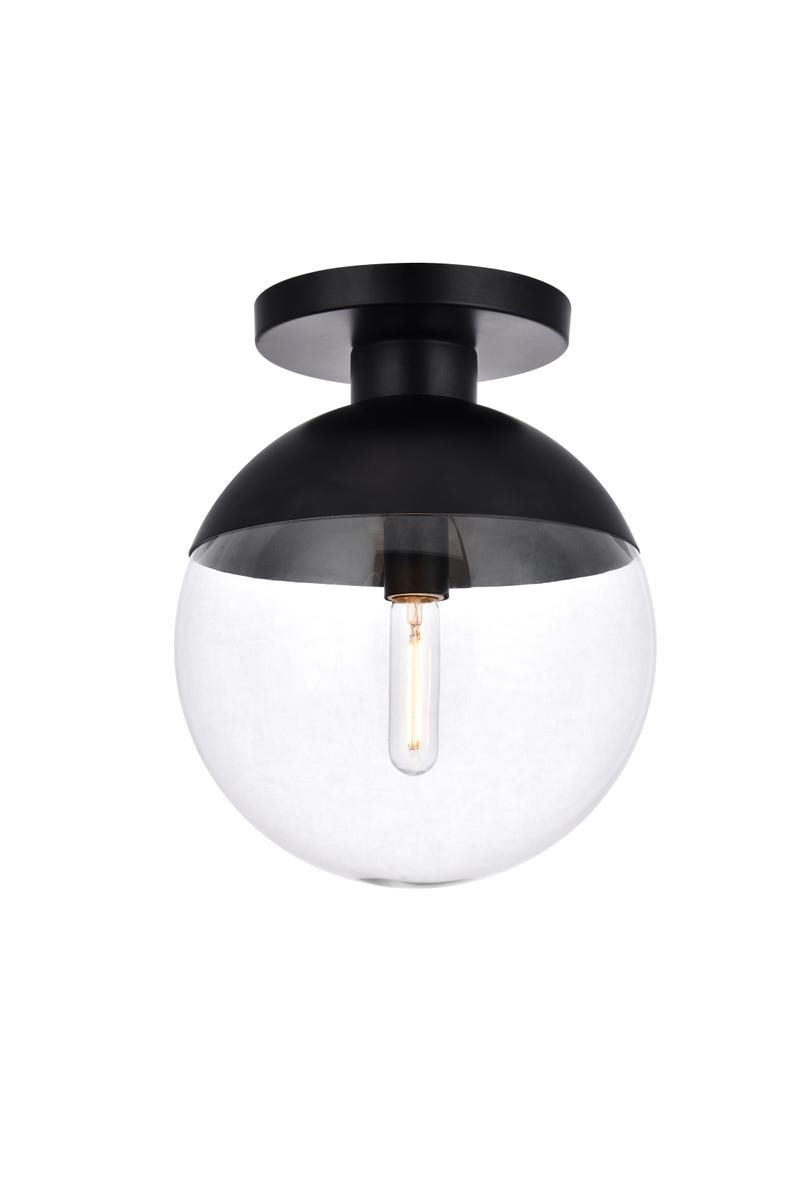 This Eclipse 1-LT Black Flush Mount from Elegant has a finish of Black, Clear and fits in well with any Midcentury Modern style decor.