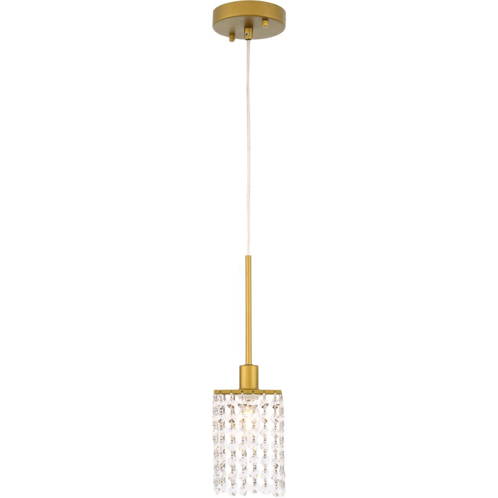Elegant brass finish 1-light rectangular pendant with hanging strands of glimmering crystals