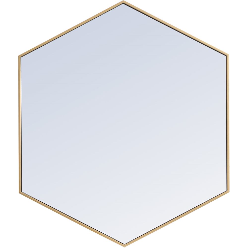 Add a bit of visual fun to your home with this playful hexagonal-shaped mirror. Its stylish personality will mingle with your décor and create a mesmerizing display of contemporary excitement. The clear mirror opens the visual space of your room, while the slender metal frame adds subtle color. Available in a black, brass or silver finish and comes in a variety of sizes--it's the perfect mirror for any sized home.