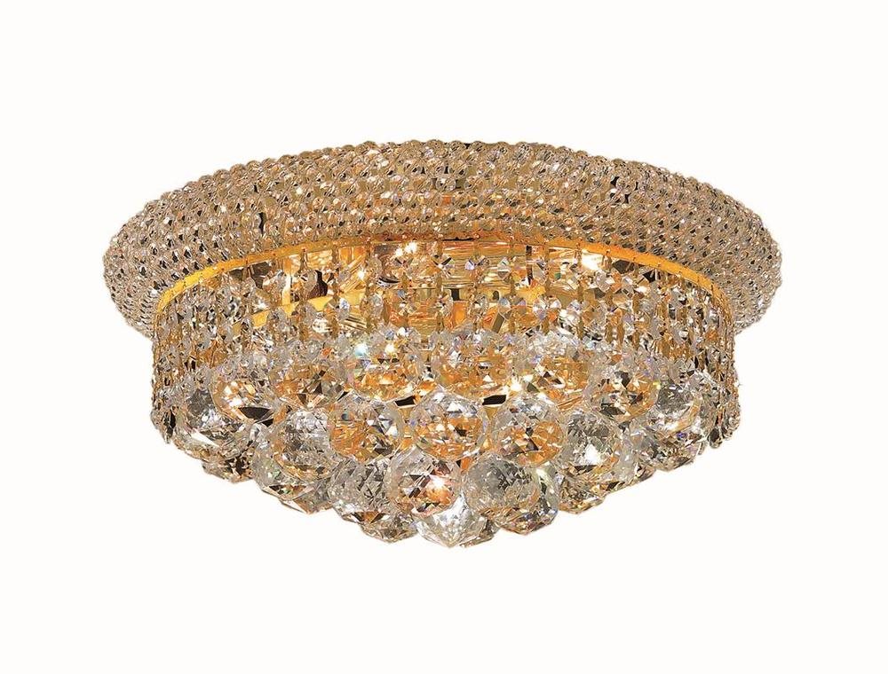 This Primo 6-LT Gold Flush Mount Clear Royal Cut Crystal from Elegant has a finish of Gold and fits in well with any Transitional style decor.