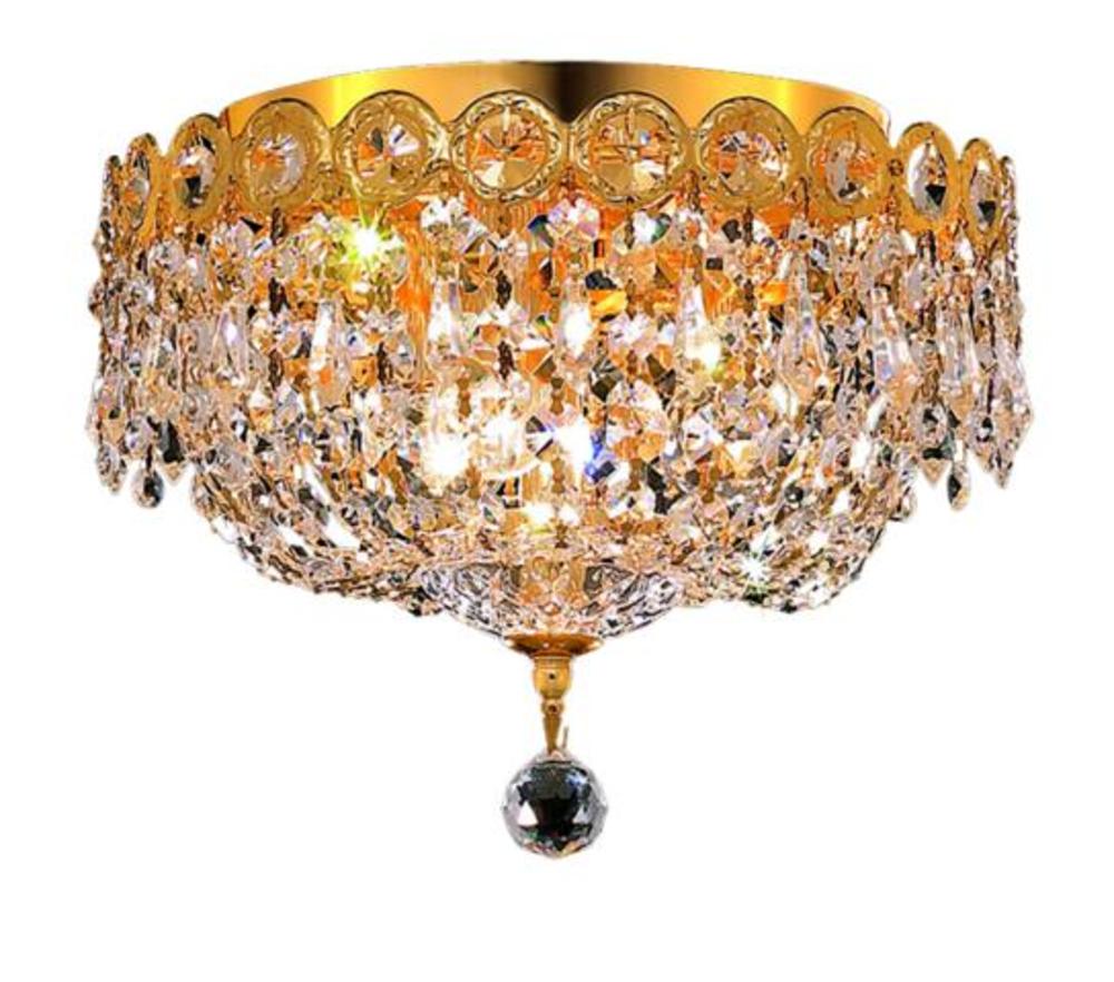 This Century 3-LT Gold Flush Mount Clear Royal Cut Crystal from Elegant has a finish of Gold and fits in well with any Transitional style decor.