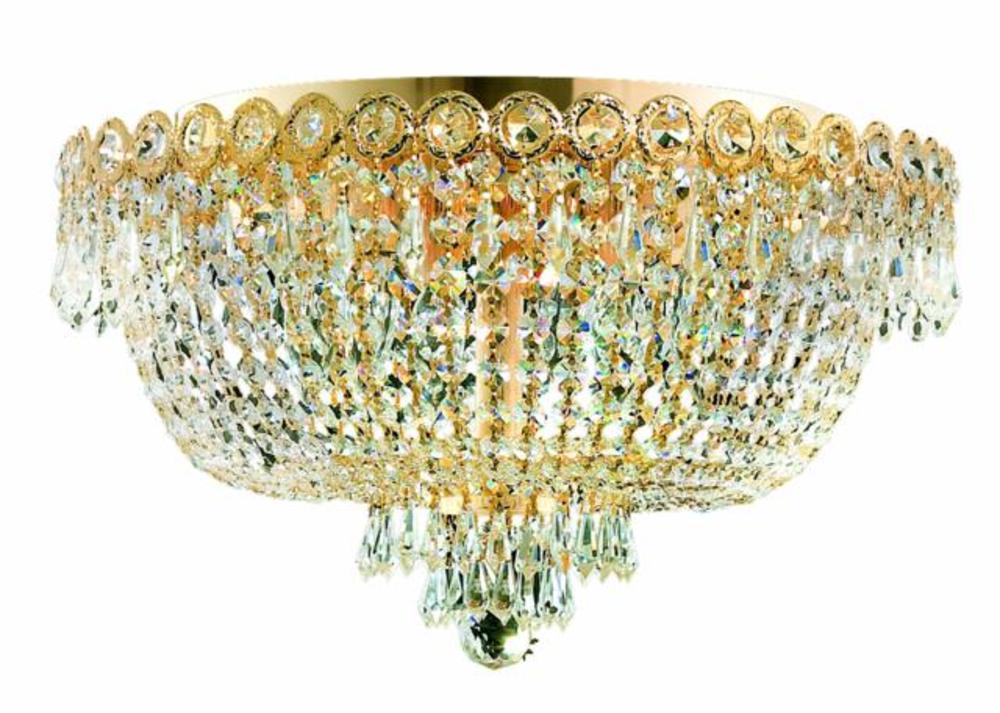 This Century 6-LT Gold Flush Mount Clear Royal Cut Crystal from Elegant has a finish of Gold and fits in well with any Transitional style decor.