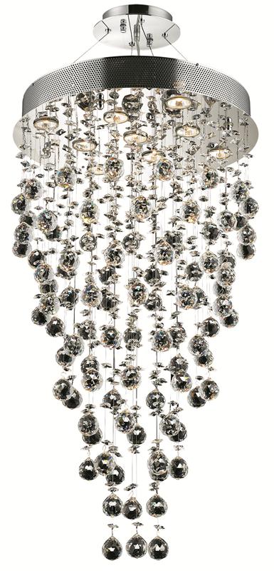 This Galaxy 9-LT Chrome Chandelier Clear Royal Cut Crystal from Elegant has a finish of Chrome and fits in well with any Contemporary style decor.