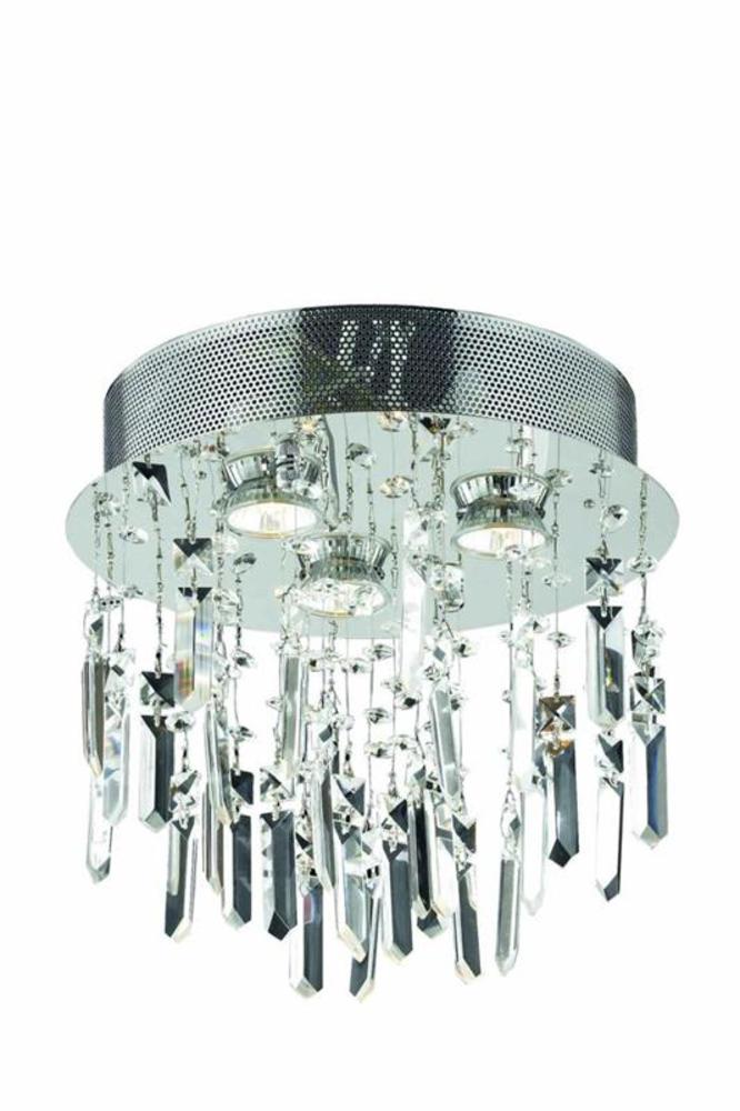 This Galaxy 3-LT Chrome Flush Mount Clear Royal Cut Crystal from Elegant has a finish of Chrome and fits in well with any Contemporary style decor.