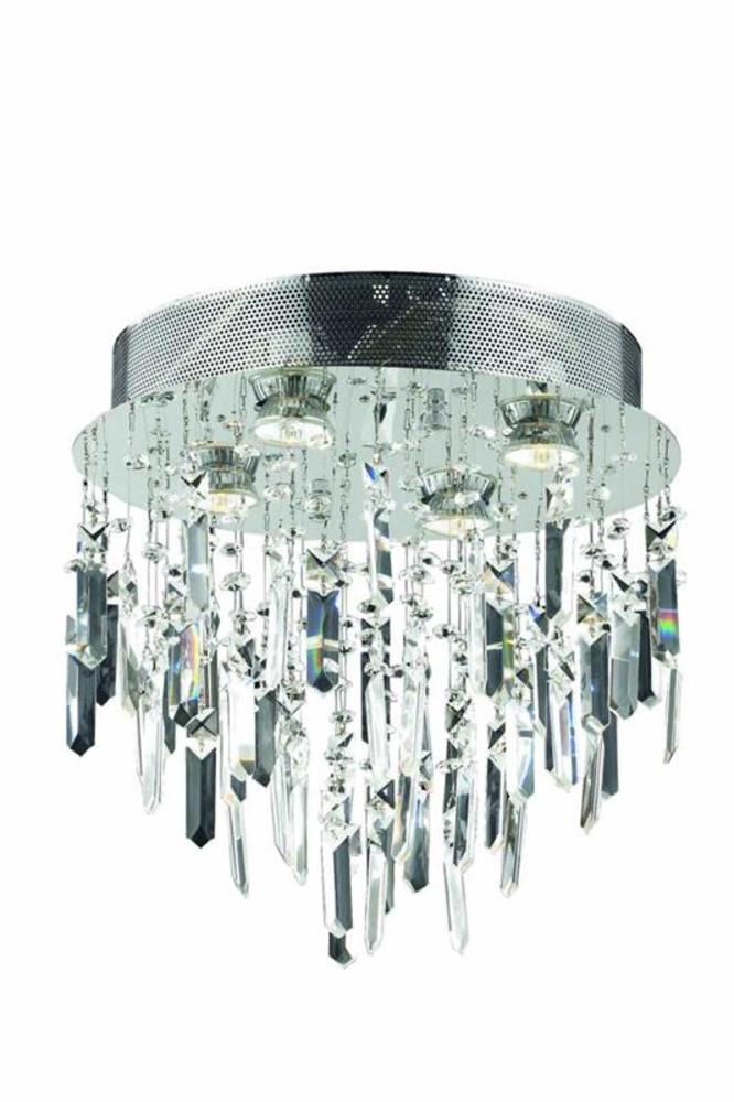 This Galaxy 4-LT Chrome Flush Mount Clear Royal Cut Crystal from Elegant has a finish of Chrome and fits in well with any Contemporary style decor.