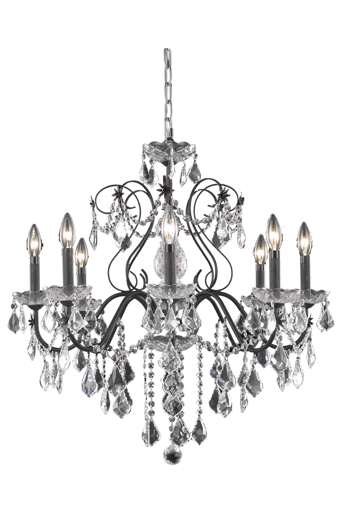 This St. Francis 8-LT Dark Bronze Chandelier Clear Royal Cut Crystal from Elegant has a finish of Dark Bronze and fits in well with any Transitional style decor.