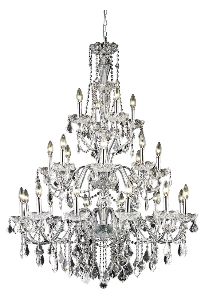 This St. Francis 24-LT Chrome Chandelier Clear Royal Cut Crystal from Elegant has a finish of Chrome and fits in well with any Transitional style decor.