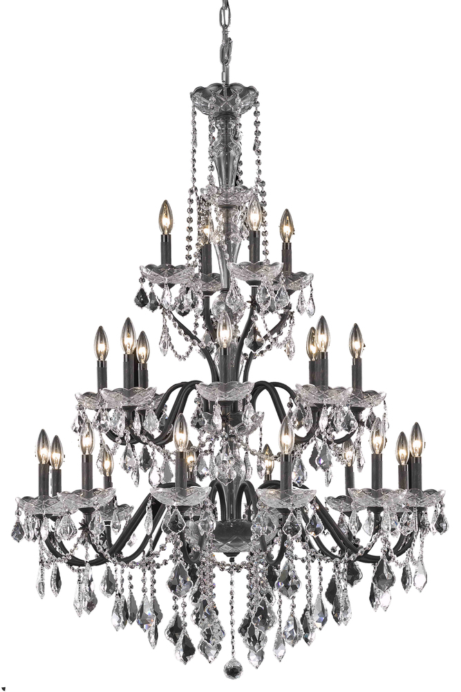 This St. Francis 24-LT Dark Bronze Chandelier Clear Royal Cut Crystal from Elegant has a finish of Dark Bronze and fits in well with any Transitional style decor.
