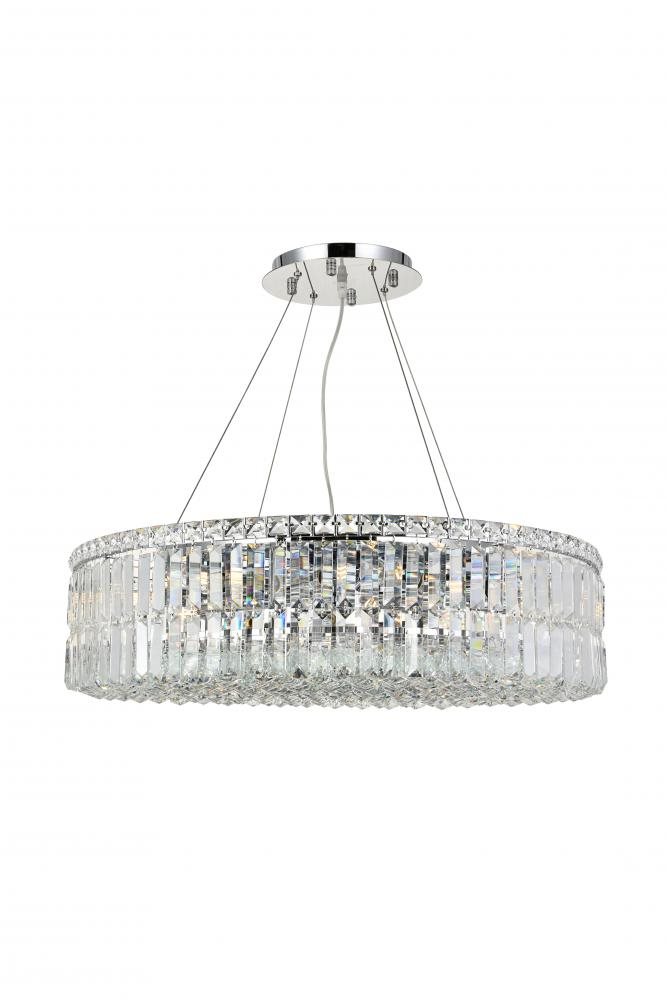 This Maxime 12-LT Chrome Chandelier Clear Royal Cut Crystal from Elegant has a finish of Chrome and fits in well with any Contemporary style decor.