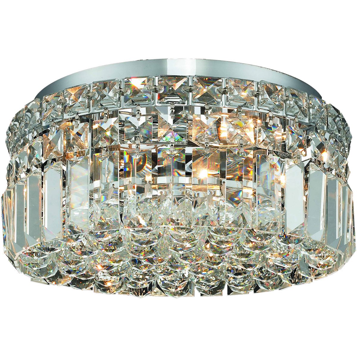 This Maxime 4-LT Chrome Flush Mount Clear Royal Cut Crystal from Elegant has a finish of Chrome and fits in well with any Contemporary style decor.