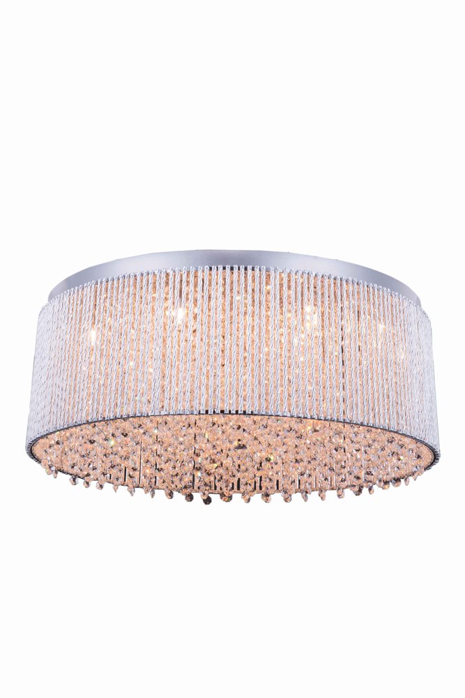 This Influx 14-LT Chrome Flush Mount Clear Royal Cut Crystal from Elegant has a finish of Chrome and fits in well with any Contemporary style decor.