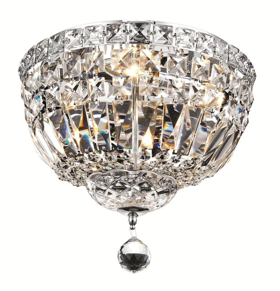 This Tranquil 4-LT Chrome Flush Mount Clear Royal Cut Crystal from Elegant has a finish of Chrome and fits in well with any Transitional style decor.