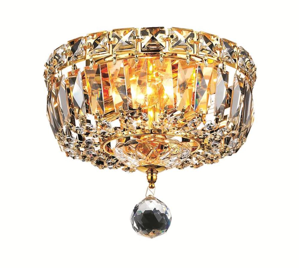 This Tranquil 2-LT Gold Flush Mount Clear Royal Cut Crystal from Elegant has a finish of Gold and fits in well with any Transitional style decor.