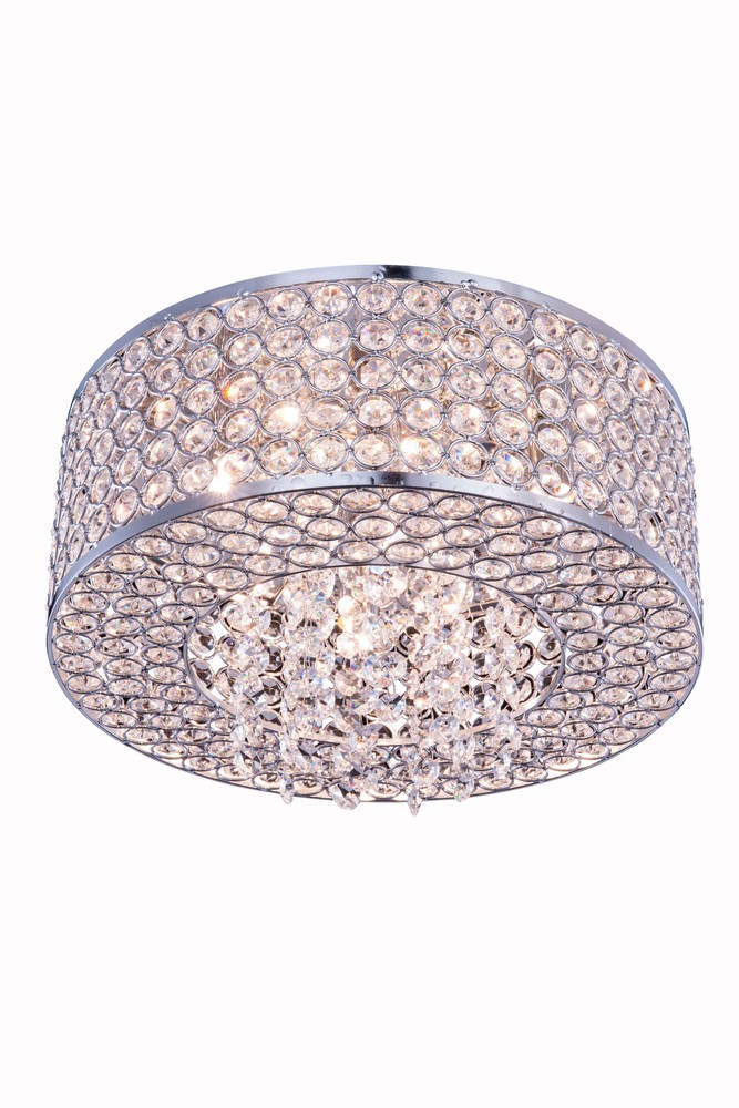 This Amelie 4-LT Chrome Flush Mount Clear Royal Cut Crystal from Elegant has a finish of Chrome and fits in well with any Contemporary style decor.