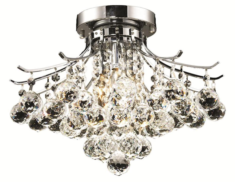 This Toureg 3-LT Chrome Flush Mount Clear Royal Cut Crystal from Elegant has a finish of Chrome and fits in well with any Transitional style decor.