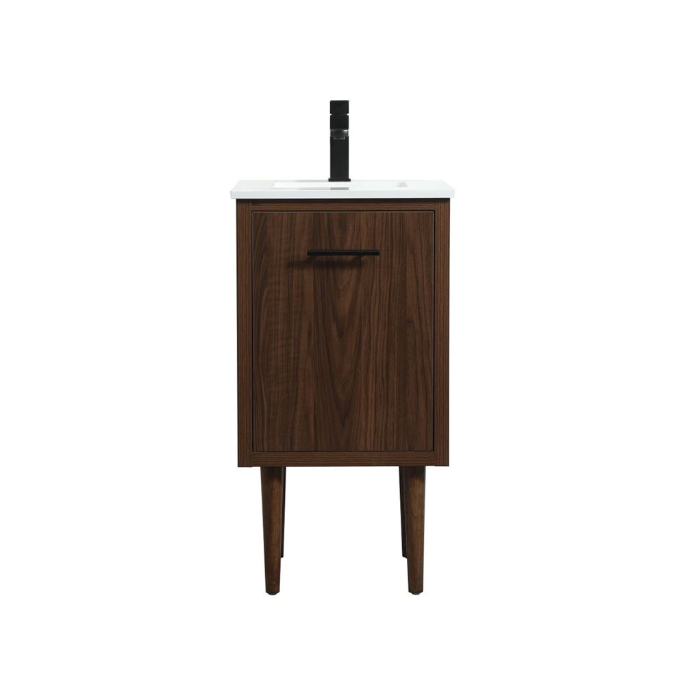 Delve into a world of minimalistic fashion and contemporary styling with this midcentury modern vanity. The clean lines anchors the design, while the straight tapered cylinder legs add subtle interest. Bar pull handle adorns the soft closing door hiding the base of the rectangular porcelain sink and letting you store your bathroom necessities and toiletries. The compact size makes it the perfect vanity for any bathroom or powder room, regardless of size. Whether you want to use this as a floating vanity or a freestanding vanity, the choice is yours. The durable ivory white quartz countertop complements the manufactured wood base vanity and is built to last.