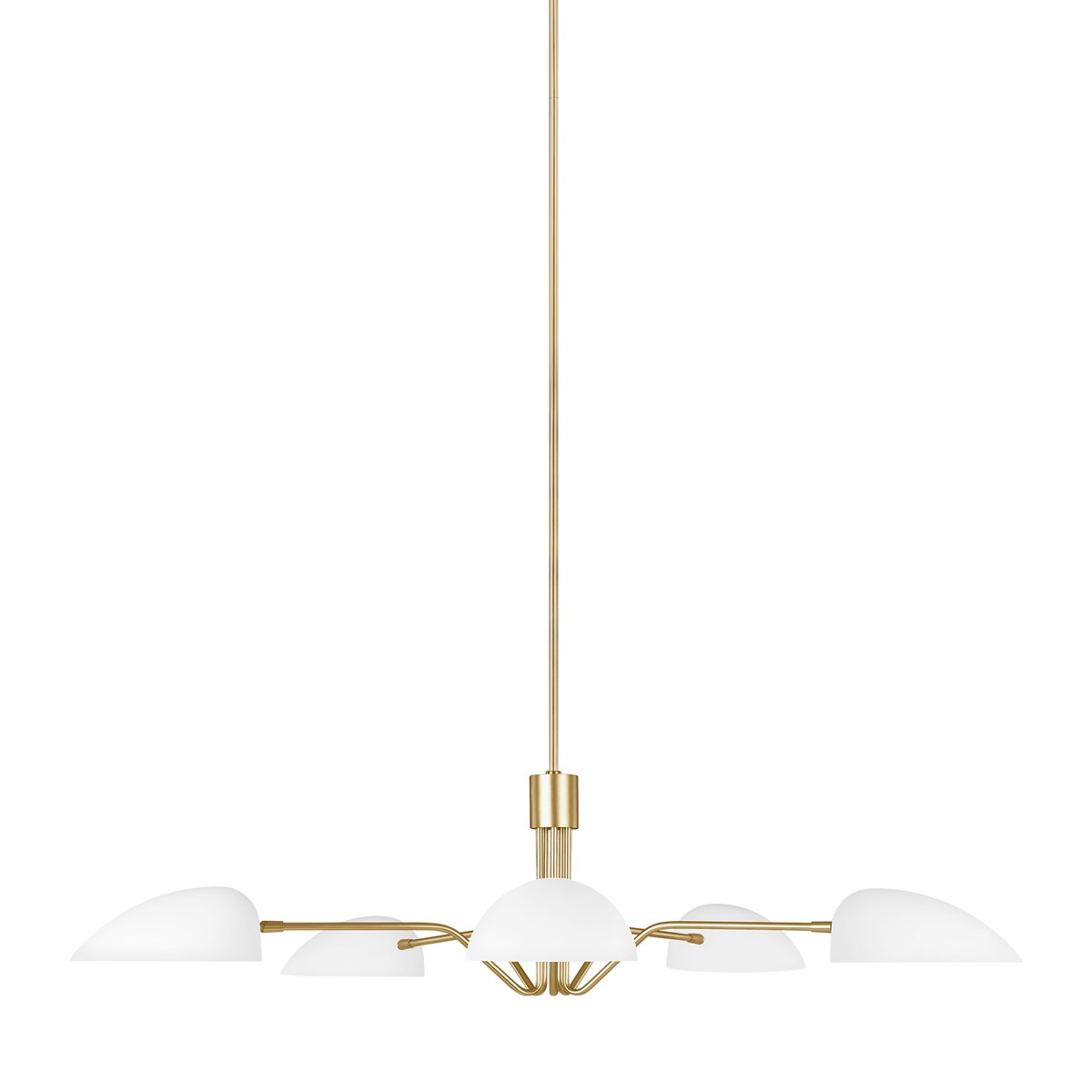 The retro-inspired Jane collection features a luxe two-tone finish of Burnished Brass with Midnight Black or Matte White accents. Adjustable shades on Jane chandeliers enable illumination that perfectly suits your space. Elongated arms and soft curves add dimension and drama to each fixture.
